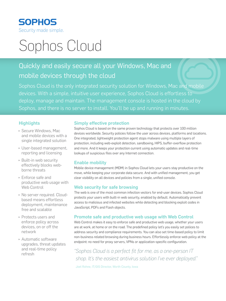 Sophos Cloud Endpoint Protection Review - PCMAG The core of Sophos Cloud Endpoint Protection is a well-designed, intuitive, Web-based management console that is easier to use than those of Trend Micro Worry-Free Business Security Services and ... Sophos Enterprise Console: List of System Requirements For additional detailed information on supported Enterprise Console platforms, refer to Sophos Enterprise Console and Sophos Central: Supported Windows Endpoint and Server Platforms which list all system requirements. Supported Platforms for Management Server. 32-bit. 64-bit. Recommended Memory. How To Install Free Sophos On Linux? - Systran Box Go to Sophos.com, create an account, and download a complimentary version of Sophos Antivirus 9. Downloading the file in tar will begin the uploading process. It is located in Ubuntu's command terminal. Make your Downloads directory accessible. Find the contents of Sophos-free-linux by pulling from it. Clicking on the free Antivirus directory ... Latest version of Sophos products Sophos Anti-Virus: How to check if you're receiving the latest data protection updates Sign up to the Sophos Support Notification Service to get the latest product release information and critical issues.