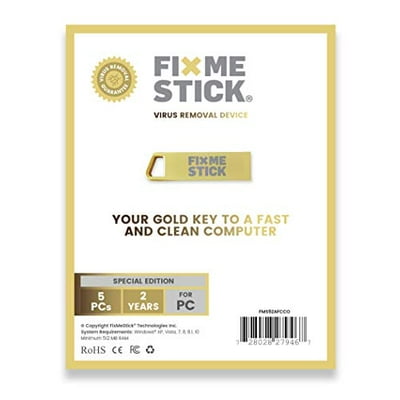 FixMeStick Gold Computer Virus Removal Stick for Windows PCs ... FixMeStick removes viruses, Trojans, rootkits, ransomware, or other malware lurking on your system. DURABLE DESIGN: Capless, high-quality metallic USB with fully encapsulated chip on board (COB) technology that is waterproof, shockproof and dustproof. Built in keyring so you always have it with you.